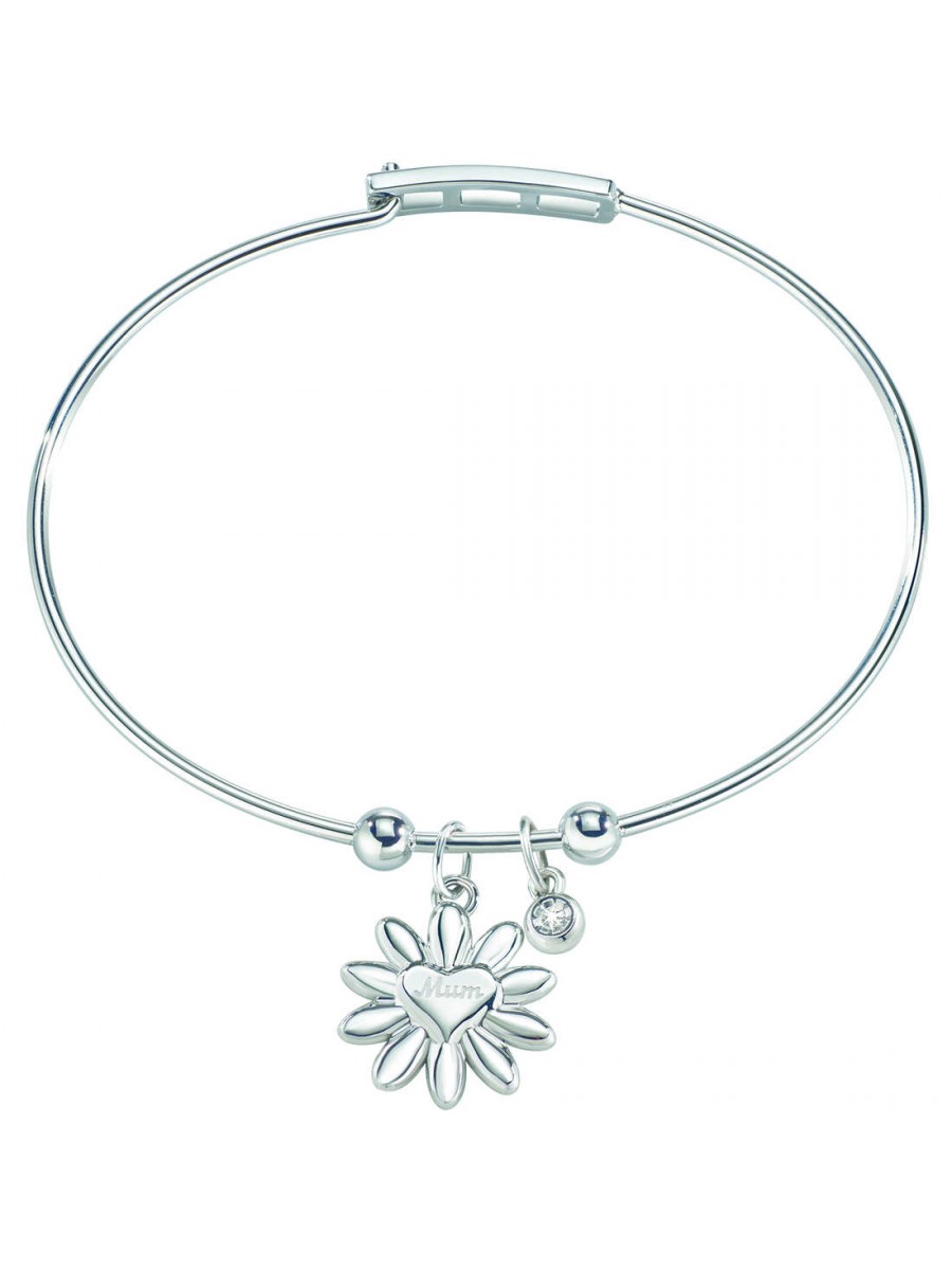 Bracciale Donna in Acciaio e Cristalli con Ciondolo a Forma di Fiore.