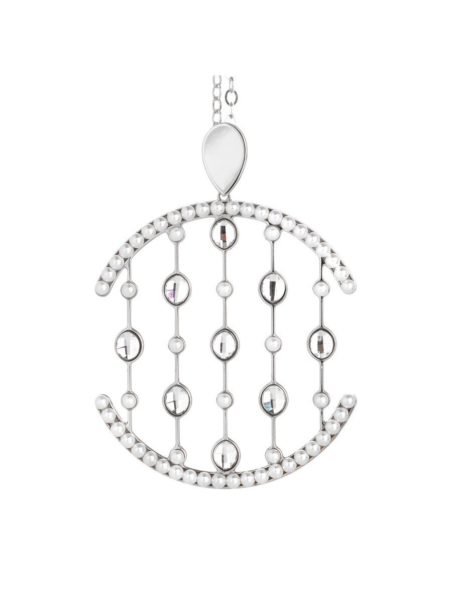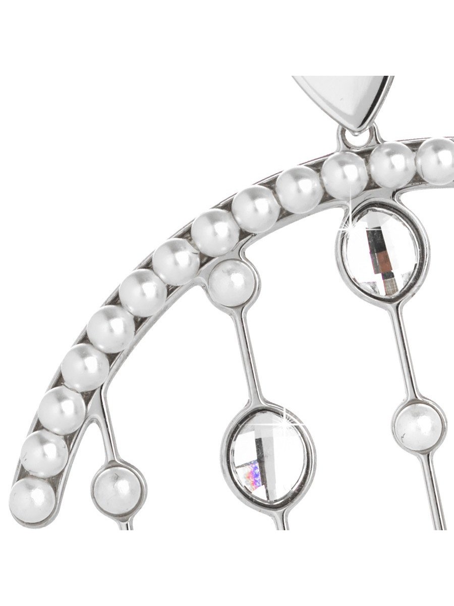 Collana in bronzo rodiato con pendente circolare sormontato da perle Swarovski bianche e decorato internamente con cascate di cristalli Swarovski crystal.